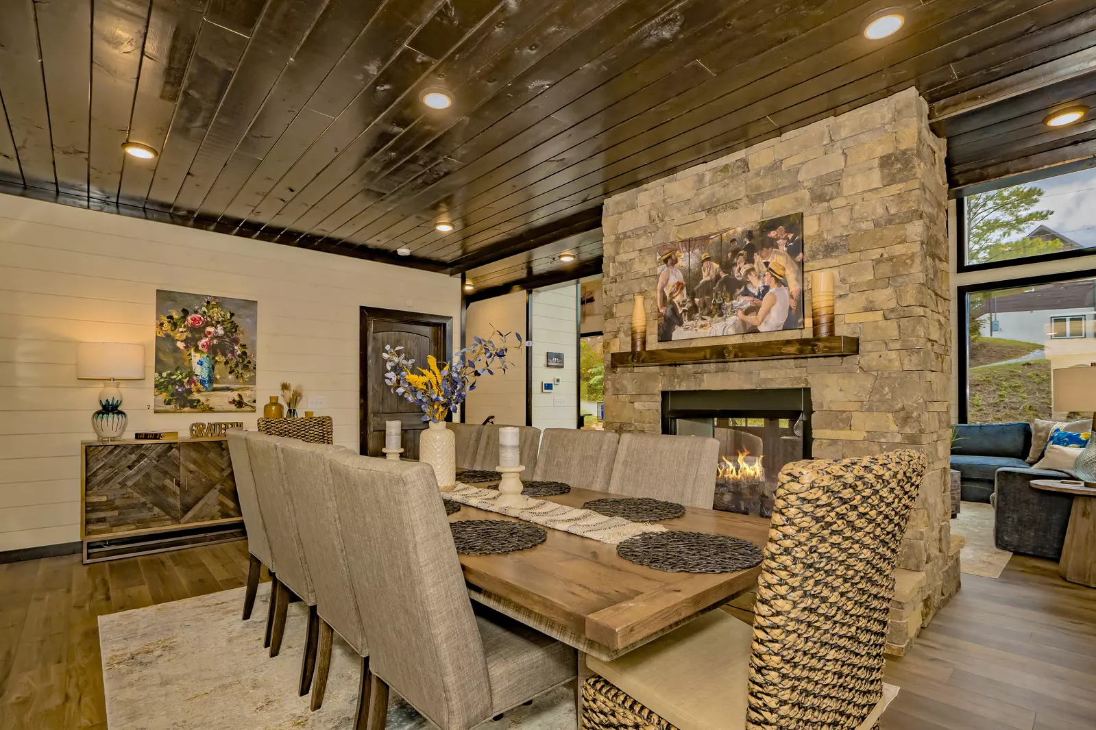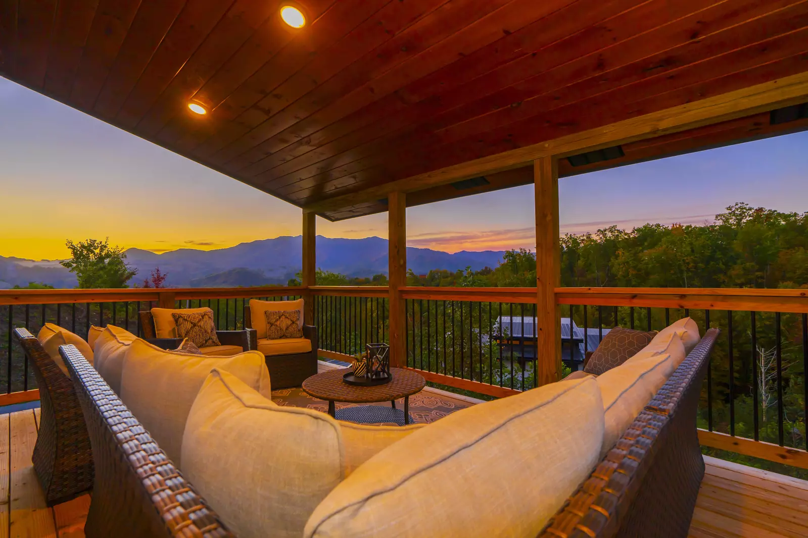 From the dining area, step out onto the deck and relax around the gas fire pit while enjoying the spectacular views of the Smoky Mountains.
